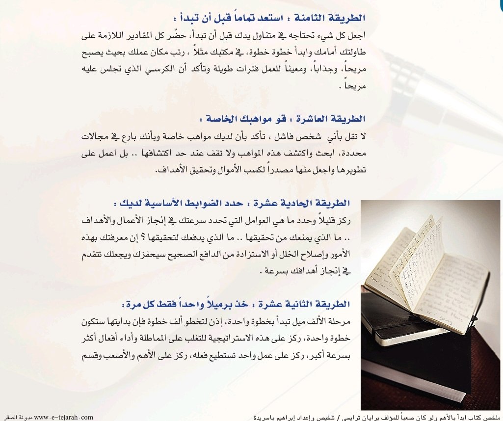 ملخص كتاب ابدا بالاهم ولو كان صعبا - ٢١ طريقة ناجحة للقضاء على التسويف وانجاز العمل باقصر وقت- ابراهيم باسريدة
