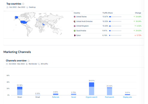 اليوم حديثنا عن موقع #السياحةـالسعودية الذي شهد زيادة في الزيارات.بواقع 27% عن الشهر الماضي ومعدل الزيارات شهريا مليون و622الف وجاء أكثر البلدان زيارة للموقع من
