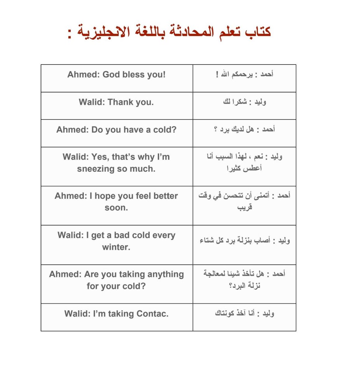 الجميل في هذا الكتاب انه عبارة عن كتاب محادثة باللغة العربية و الانجليزية معا✌️ يعني كتاب مناسب جدا للمبتدئين