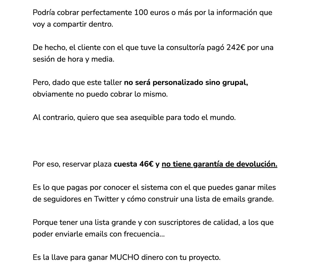 Si tienes un producto que PODRÍA costar 500 pero lo estás vendiendo por 120, tu mensaje de ventas debe ser lo suficientemente bueno como para que una persona estuviera dispuesta a pagarte 500.