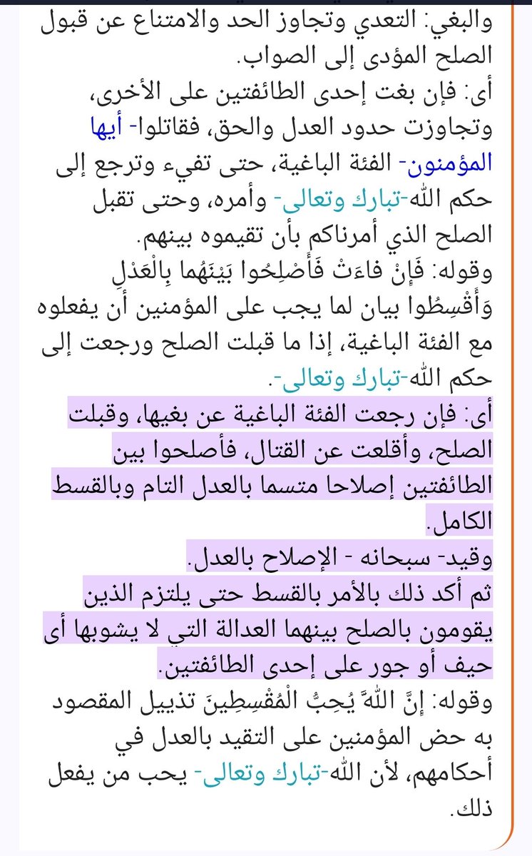 الله يأمرك بإصلاح ذات البين بين طائفتين.. فإن بغت أي طغت إحداهما وهو حال الجزائر التي تريد أخد بلدك وأرضك ومالك وهتك عرضك دون وجه حق فأنت مطالب يا خروف ويا نعجة عوض أن تردد تراهات خطباء يوتوب وعلماء فيسبوك أن تقاتلها حتى تفيء الى أمر الله.. هدا قول الله وتفسير كتابه بأجماع الأئمة