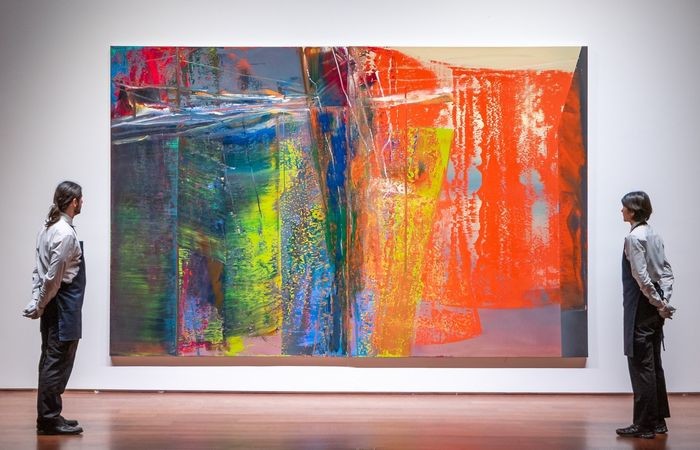 يبلغ قياس اللوحة حوالي 13 × 8.5 قدم، وتتميز بحركة تشبه الموجة في لوحة قماشية متعددة الألوان منها الأزرق والأصفر والأحمر.