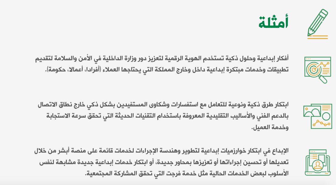 1- أن تكون الفكرة ذات صلة بخدمات وزارة الداخلية الإلكترونية والميدانية