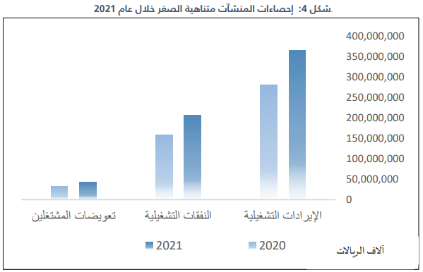 3. النفقات التشغيلية في المنشآت متناهية الصغر ارتفعت بنسبة 30 % مقارنة بالعام 2020م.