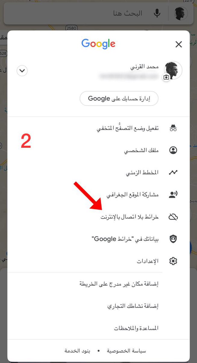 • بعد ما توجهنا الى الملف الشخصي بتجينا هذي الخيارات نضغط على ( خرائط بلا اتصال بالانترنت )