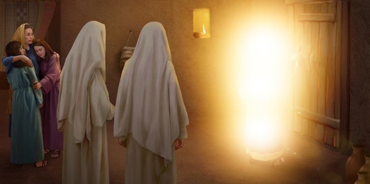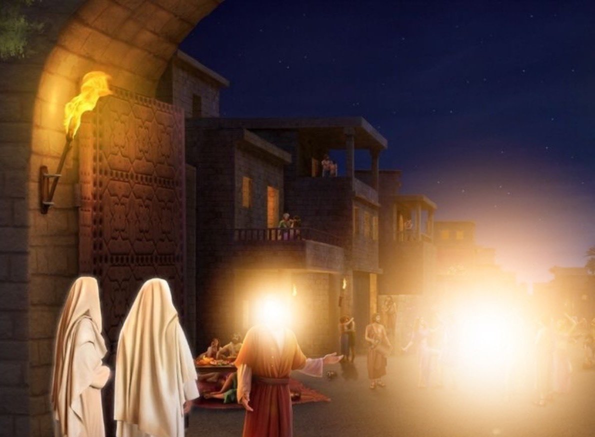 تبدأ هذه الليلة عند أحد الأنهار الواقعة بالقرب من مدينة سدوم عندما كانت ابنة نبي الله لوط تملأ وعائها بالماء حتى أقبل عليها ثلاثة رجال لكنهم ليسوا كأي رجال، ثلاثة رجال لكن أشكالهم لا تبت لأهل الارض بصلة فجمالهم يستحيل أن يكون كجمال البشر ابدًا، فصعقت ابنة لوط من جمالهم.