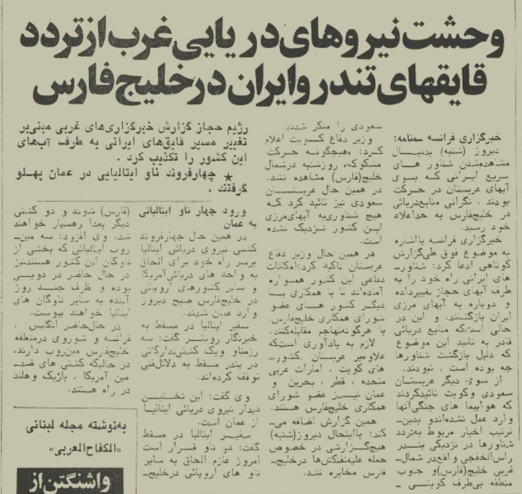 «ما بنا نـداریم برای بـدترشـدن اوضاع درخلیـج فارس پیشقـدم شویم. اما اگرجلوی صـدور نفت ما را درخلیـج فارس بگیرنـد، ما هم جلوی صدور نفت شرکای عراق را میگیریم و برای اینکار وسایل و ابزارلازم را دراختیار داریم.»