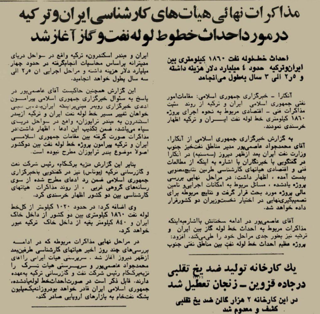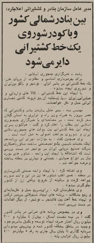 سیاست ما این است که بخش عظیمی ازصادرات خودرا ازطریق خط لوله نفت خام ازطریق دریا به خاك شوروی صادر و برای کاهش حجم واردات کالاهای موردنیاز، سعیمان این است که از اتکا به بنادرخلیج فارس بکاهیم و ازطریق دریای سیاه درشوروی و بنادر بلغارستان نسبت به ورودکالاهای مورد نیاز اقدام کنیم.