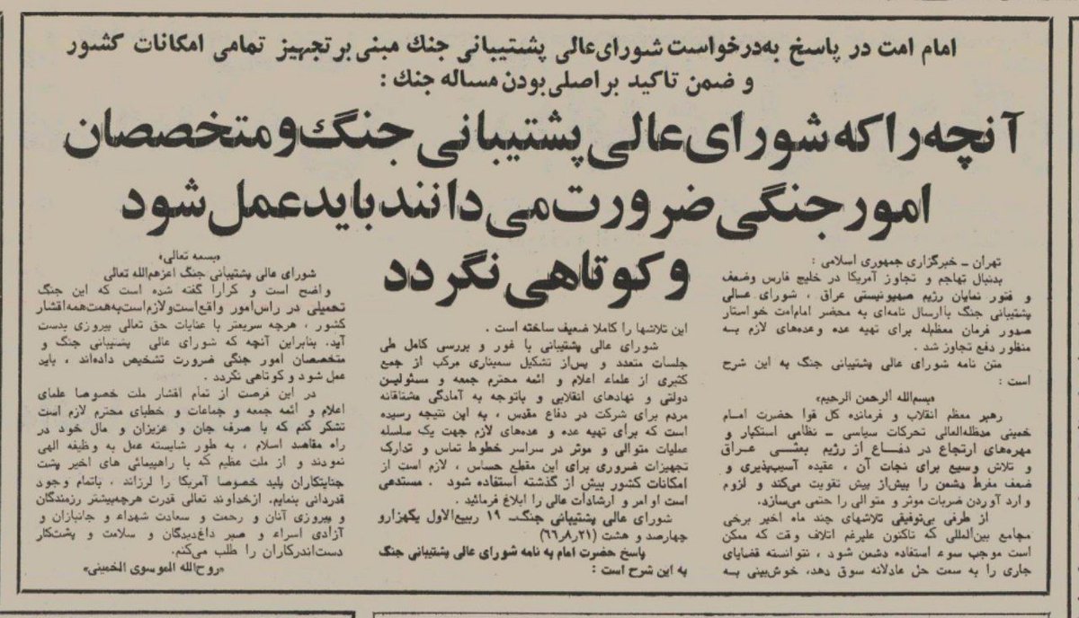 پیروزی بر عراق برای ما شیرین است اما لذت جهاد با ریشه کن کردن کفر و عاملیکه عراقیها را برای جنگ با ایران تحریک کرده شیرینترخواهدبود.