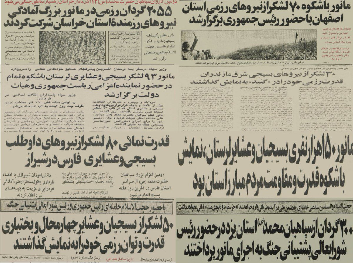 اما دستگاه تبلیغاتی برای تشجیع جامعه مانورهای مختلفی را به سرعت در طول مدت بسیار کوتاهی در استانها و شهرهای مختلف با حضور مقامات عالیرتبه به نشانه پیوستن مردم به بسیج آماده سازی برگزار کرده و اعلام شد که آنها برای اعزامهای پشت سرهم ثبت نام کرده و برنامهریزیها درحال انجام است.