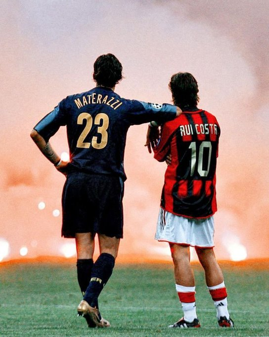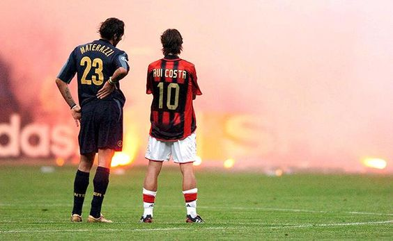 حين التهمت أدخنة الألعاب النارية الحيز الأكبر من المشهد، وفي الوسط وقف ماركو ماتيرازي نجم إنتر متكئا على روي كوستا لاعب ميلان آنذاك، وهما يتابعان ما يحدث.