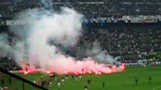 بعد دقيقة واحدة عادت جماهير الإنتر لإشعال المفرقعات وإلقاء الزجاجات مرة أخرى .. ليقرر الحكم وقتها إلغاء المباراة وإحتساب الفوز لصالح الميلان بنتيجة 3 -0 ..