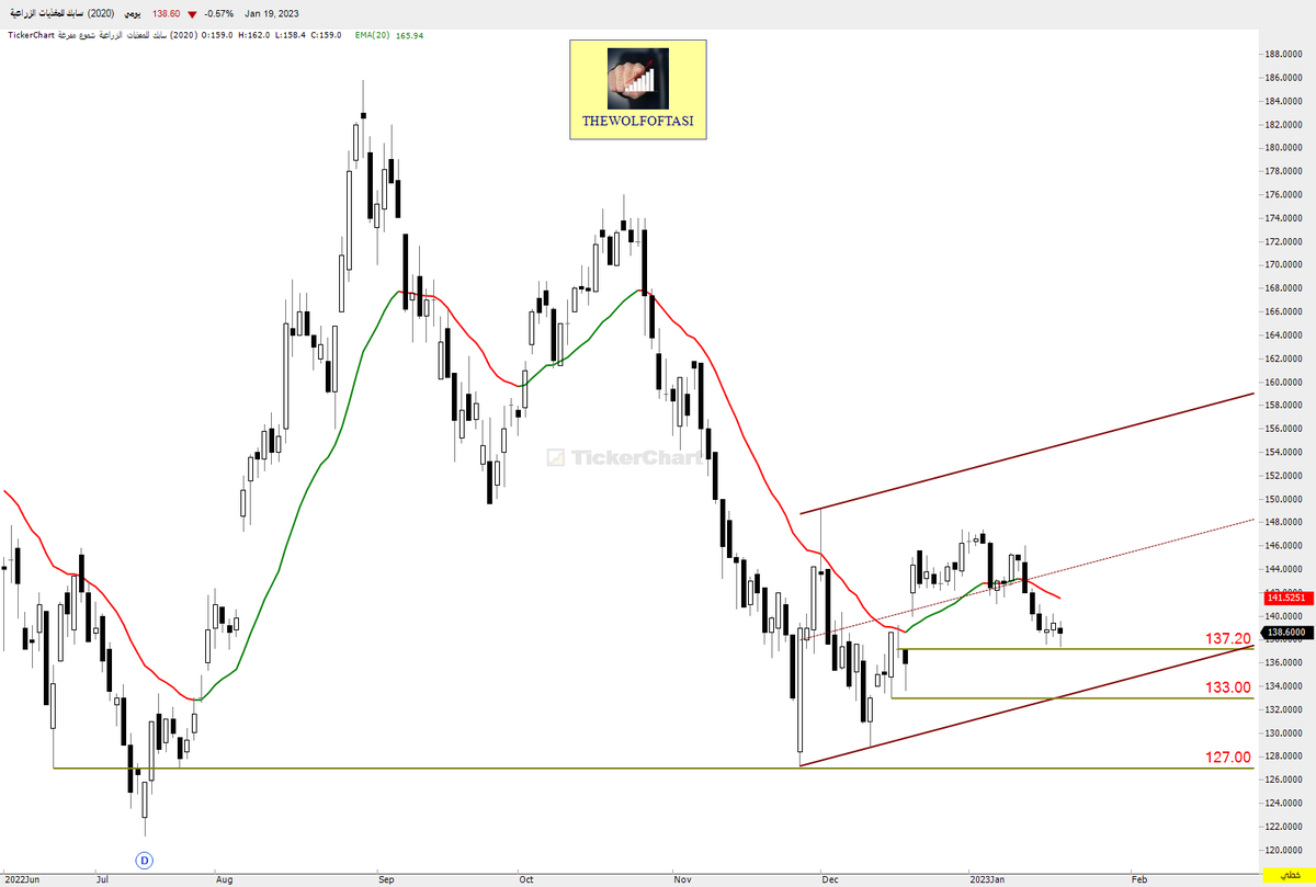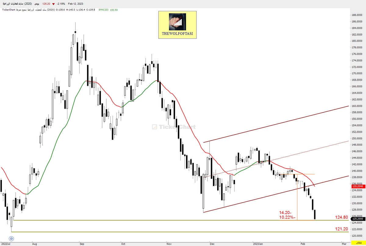 مستوى الدعم القادم في حالة كسر قاع اليوم والله أعلم عند الـ 121 ريال ..