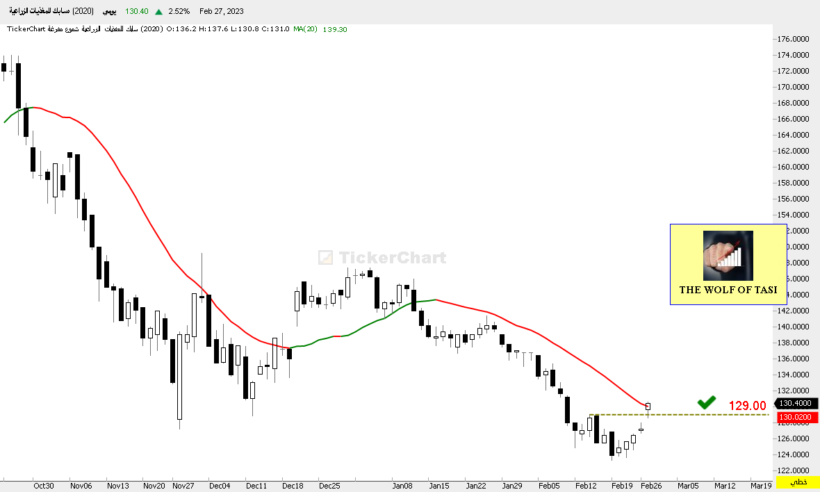 سهم #سابك_للمغذيات يعود إلى مستويات ما فوق الـ 129 ريال مع افتتاح جلسة اليوم وهذا أعلى مستوى للسهم في أسبوعين بعد ما سجل السهم قاع عند الـ 121 ريال .