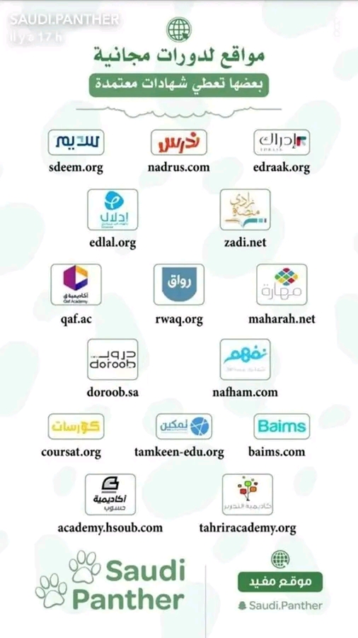 وتقدم كورسات في كل المجالات مثل اللغة الإنجليزية والفرنسية وكورسات في الكمبيوتر وكيف تحمي جهازك من الاختراق وغيرها والشرح بسيط وسهل