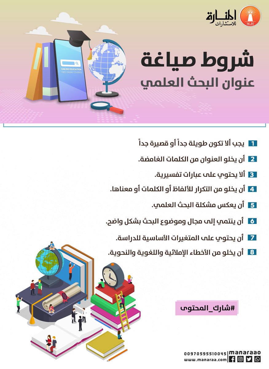 💡كتابة عنوان بحث علمي موجزاً وسلساً وذات مدلول واضح، وذلك لأن عنوان البحث له أهميته في لفت انتباه القارئ حول موضوع البحث وإن كان البحث يتناول مشكلة من مشكلات المجتمع المعاصرة.