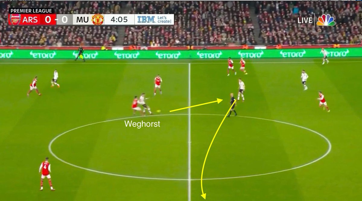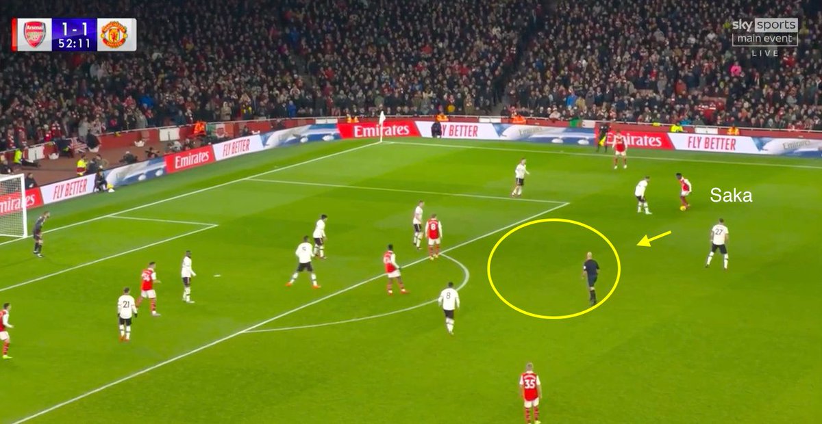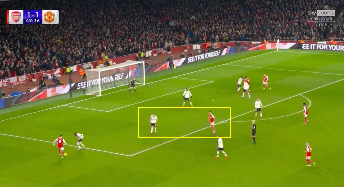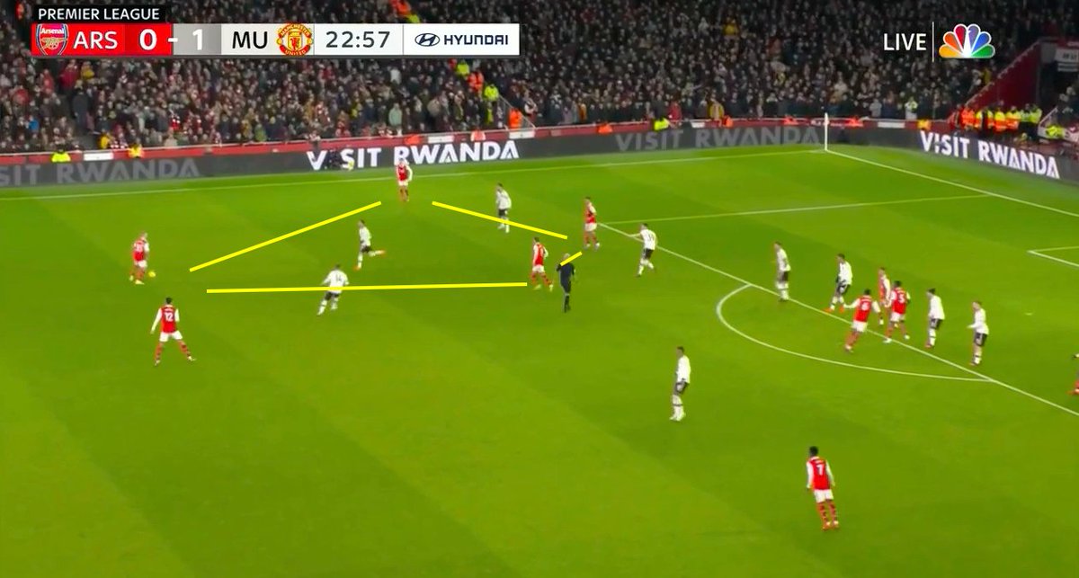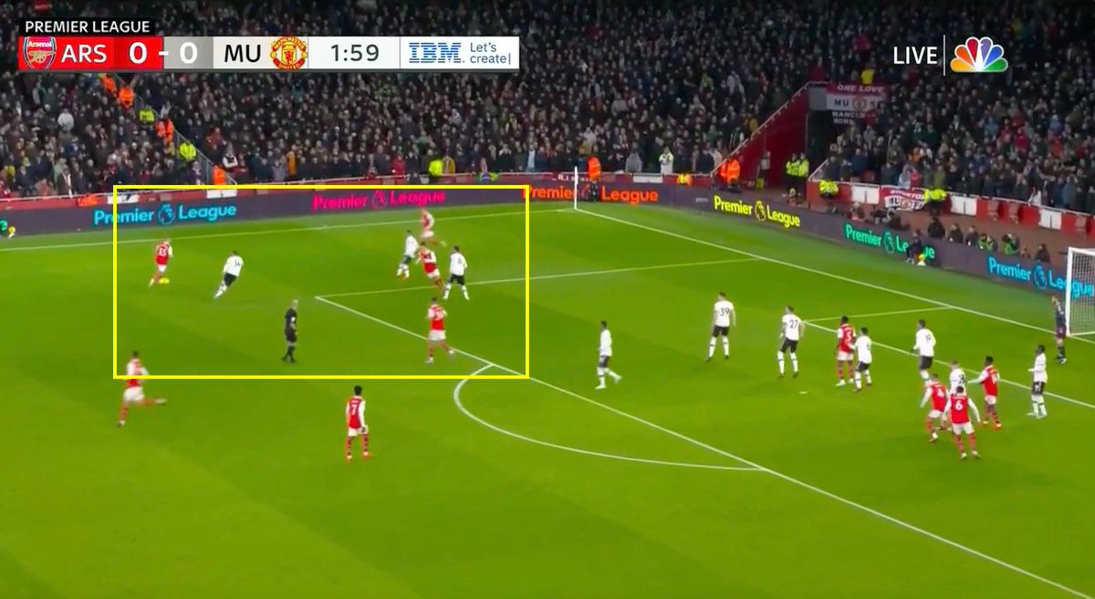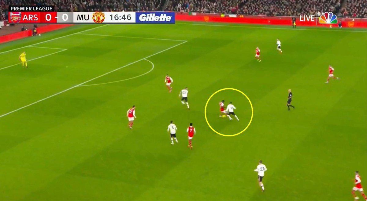 In the 1st goal, we saw initially that Martinelli holding the width and Xhaka was in half space with Odegaard.