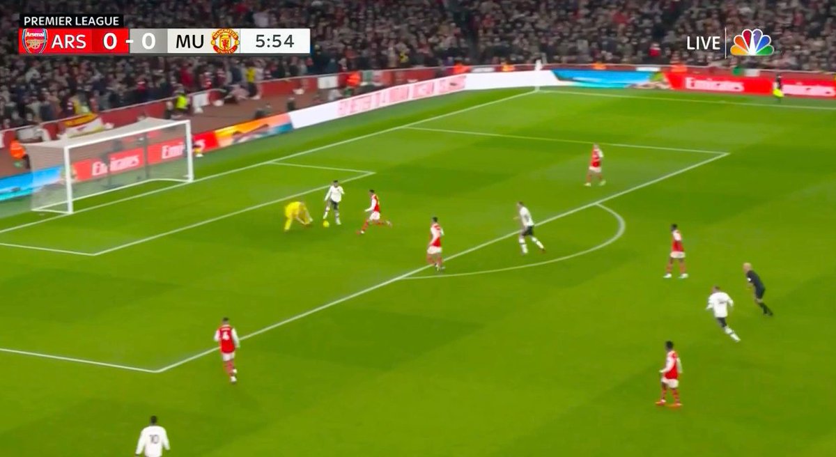 This is also shown in the statistics for this match, comparing Arsenal def line height (49) to Man United (37).