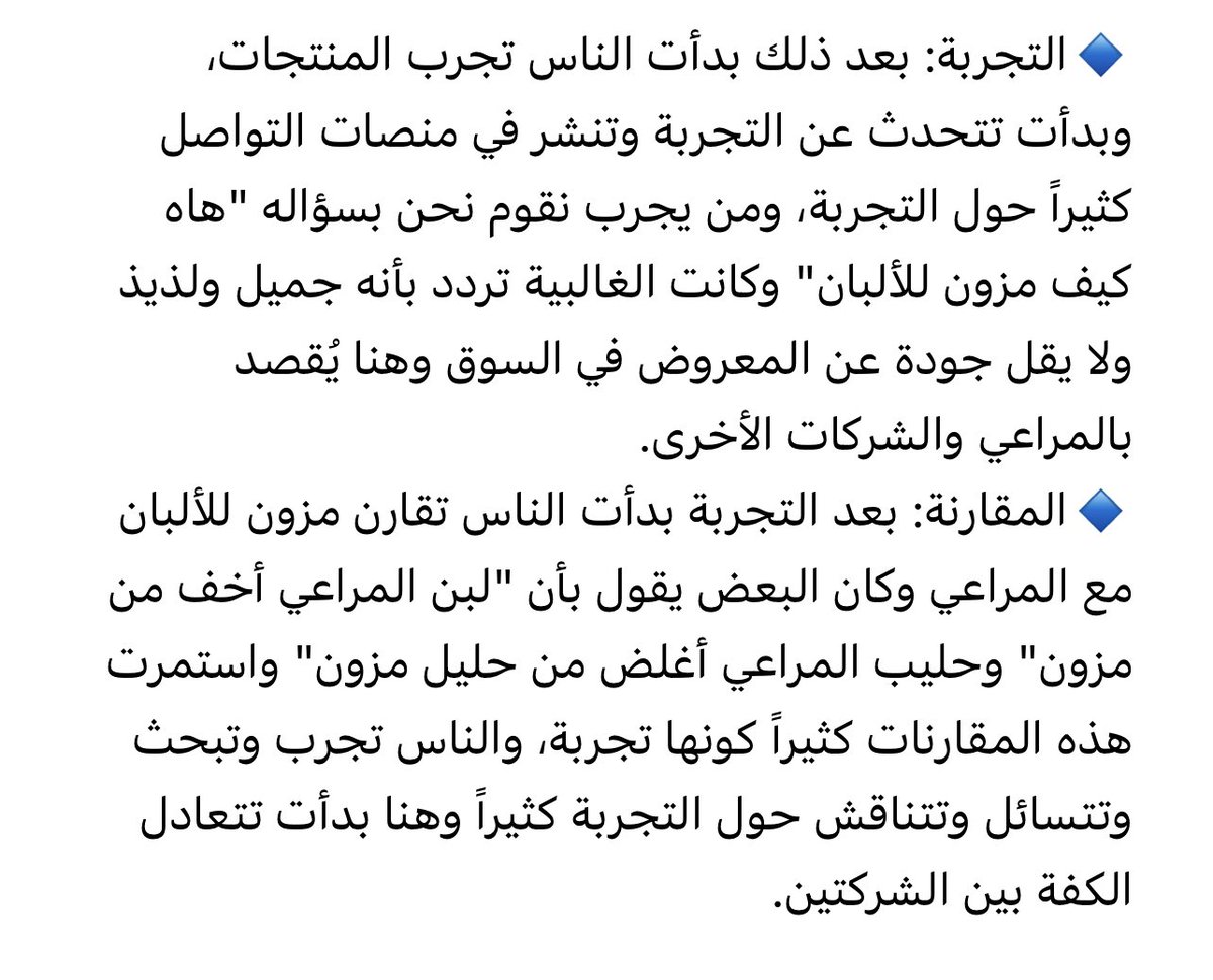 ايش معناها؟ وكيف تتم؟ وكيف ممكن تصنع تجربة عميل استثنائية؟ تدرون وش صار بين مزون للألبان والمراعي ؟ في التنافس فيي تجربة العميل! سأحاول تبسيط تجربة العميل لكم في هذا الثريد وكيف تتقاطع مع #التسويق و #التواصل