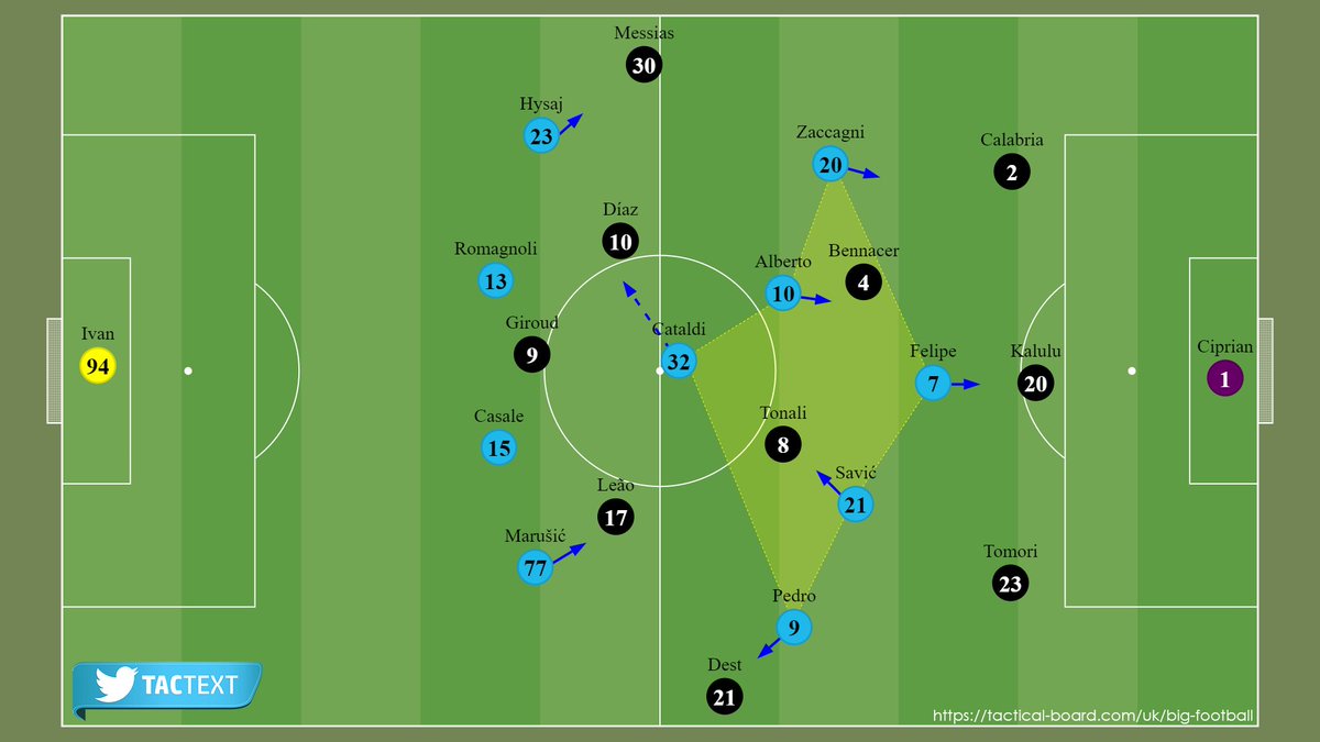 ▪️ ضغط لاتسيو كان جيّداً جداً واستطاع إغلاق خطوط التمرير بشكل ممتاز عن لاعبي ميلان