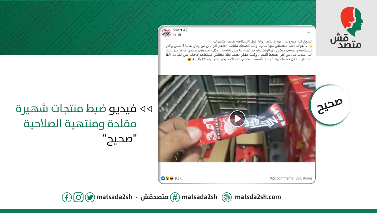 - الفيديو صحيح وحقيقي. ويُظهر قيام الجهات التموينية في محافظة الغربية بضبط مصنع غير مرخص بمدينة طنطا، يقوم بتقليد منتجات عدة لشركات شهيرة. ✅✅ @msitgovegypt