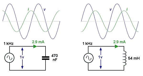 في أقصى الحدود، عندما تختلف زاوية الطور بمقدار 90 درجة، سيكون هناك تيار صفري عندما يكون الجهد هو الحد الأقصى، والعكس صحيح. ستكون هناك أوقات يكون فيها التيار والجهد موجبين أو سالبيين (عند هذه النقطة تستهلك الدائرة قدرا من القدرة)
