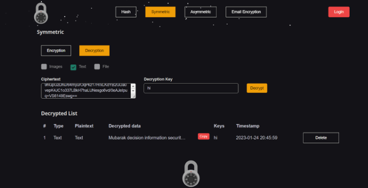 هنا نستخدم نفس مفتاح التشفير يعني يكون عندنا قفل و المفتاح عبارة عن مفتاح واحد عشان اللي يفتح الملف