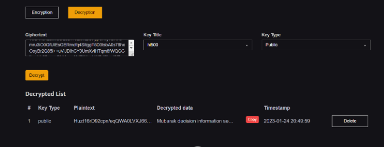 يكون عند الطرفين ويتم فتح الملفات المشفره من خلاله