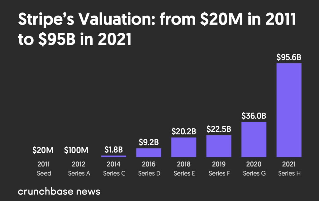 وكذلك @stripe الذي لا زال تقييمها ينخفض حيث وصل آخر الأخبار عنها عن نيتها بالدخول في جولة استثمارية بتقييم أقل من 60 مليار دولار ( أو حوالي هذا الرقم )
