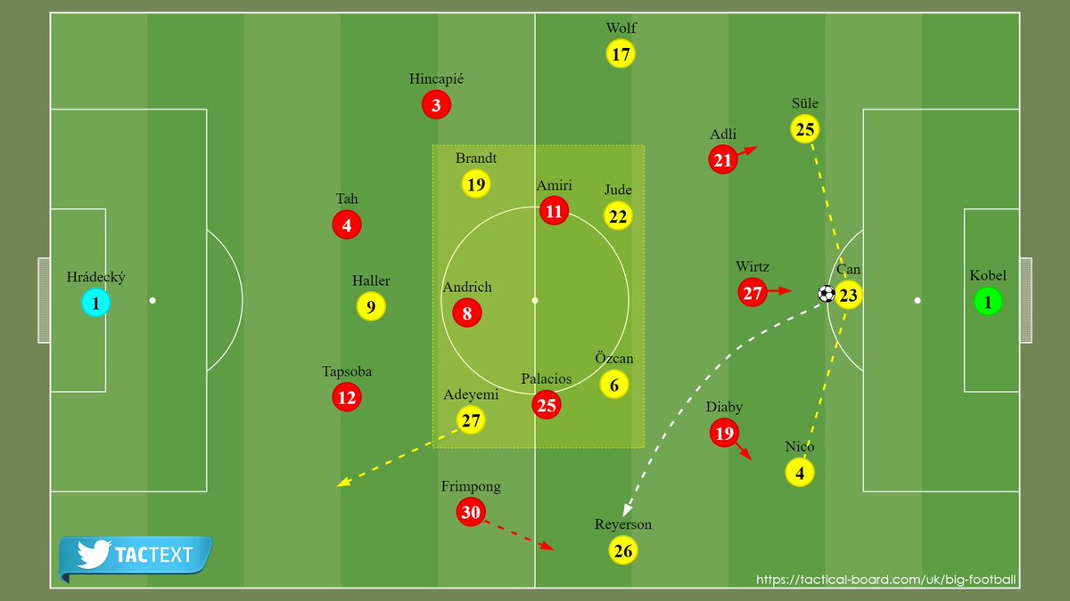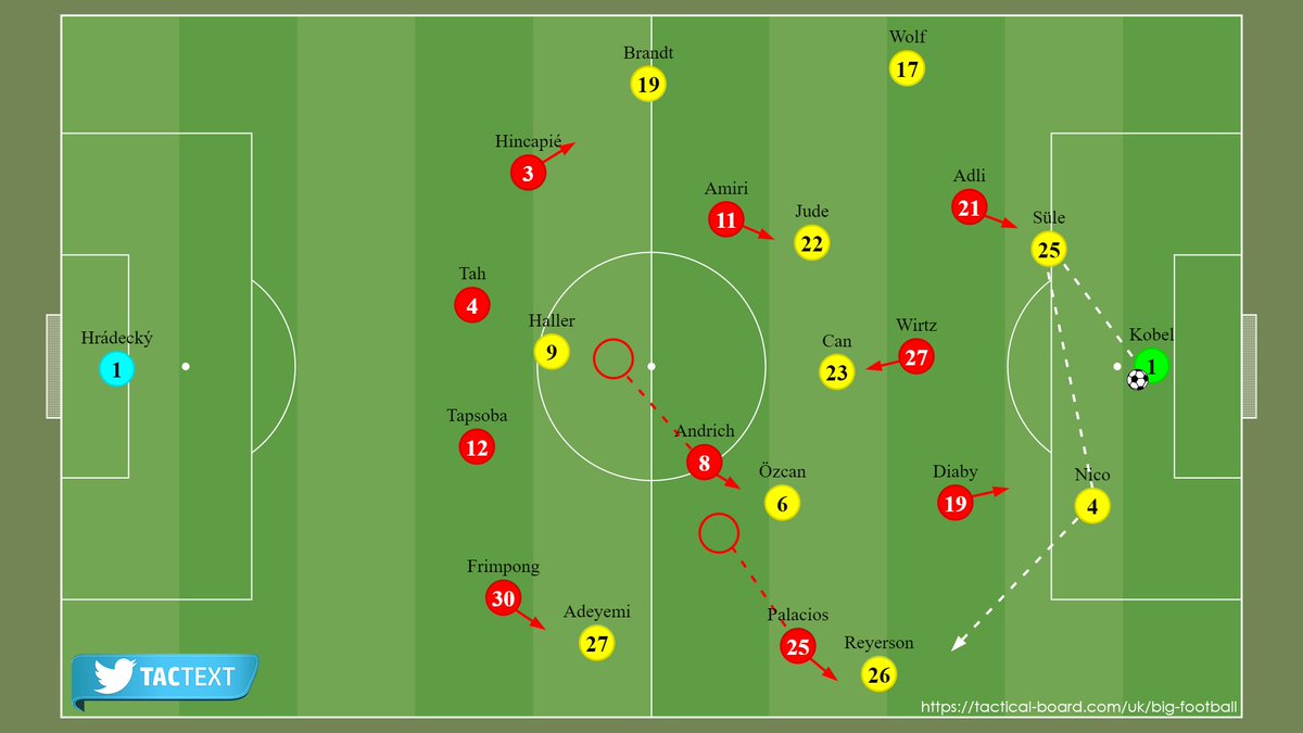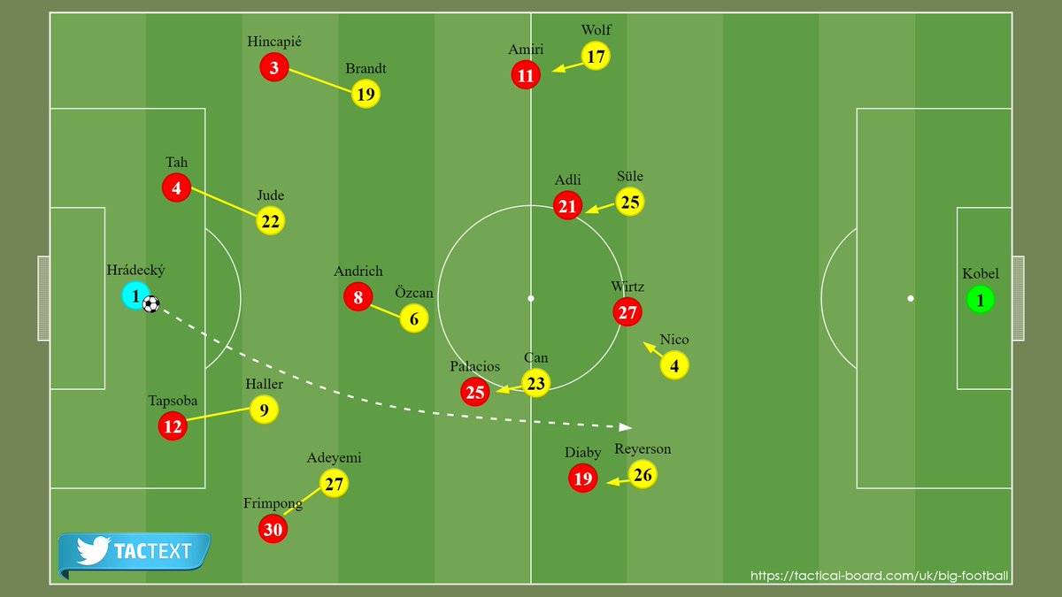 ▪️ تحرك بالاسيوس وأميري للضغط على الظهيرين حال تحرك الكرة
