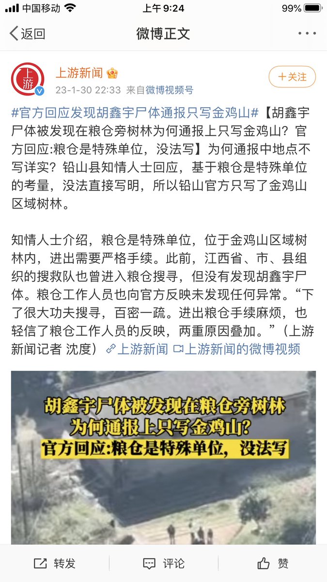 有回复说粮库进去搜索过一次。但我看见的细节是这样的:警察只是询问了管理人员,并调取了粮库出入的录像,发现无人出入以后就未进行搜索,但实际上粮库墙在修,导致可以翻进去。考虑到国家粮库这个单位本身的行政地位,以及当时只是报失踪,还没当死亡案看。警察这个操作也是可以理解的。