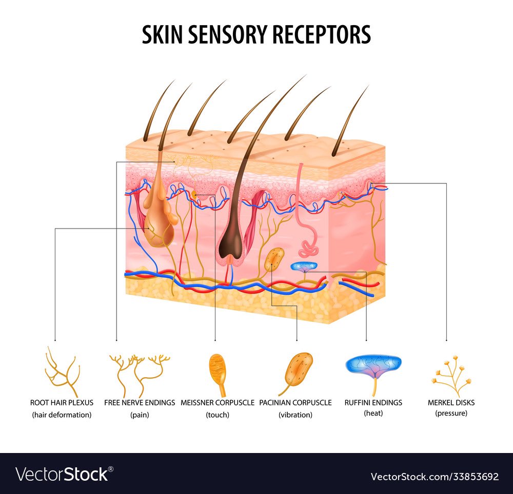 📑 | الغرض من هذه المستقبلات هو جمع المعلومات من البيئة وارسالها الى الدماغ، وهذه المستقبلات لها مسار محدد في جميع انحاء الجهاز العصبي، ينتقل التحفيز عبر المسار العصبي الى الاعصاب والعمود الفقري، ثم صعودا من خلال جذع الدماغ (Brainstem).