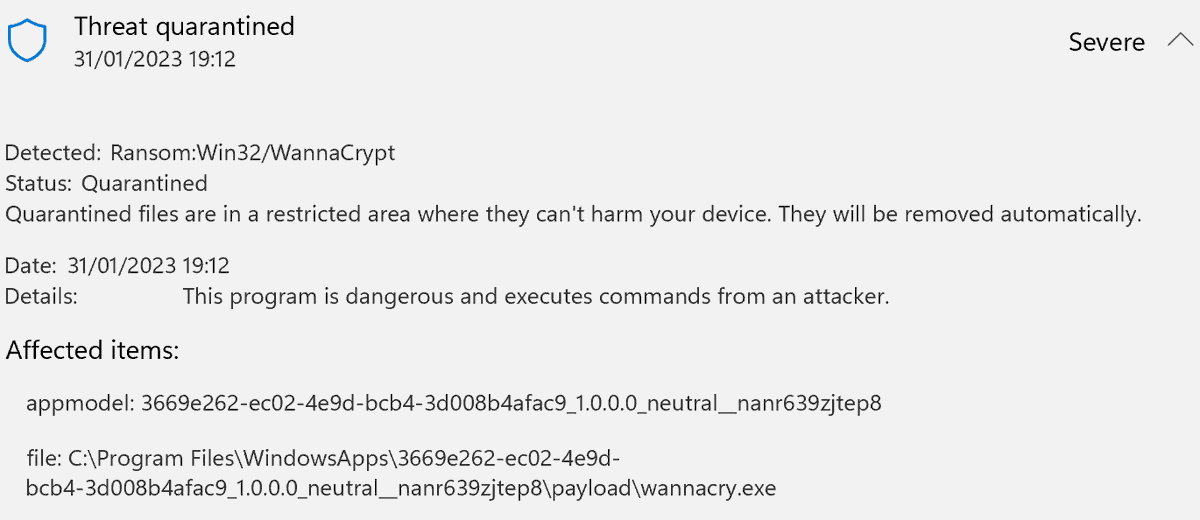 Our .appx demo package is based off of a in-the-wild sample of #Magniber #Ransomware that was signed with a stolen signature (Jan 2022). With this change in Windows 11 it is now possible to install unsigned appx packages (given required perms).
