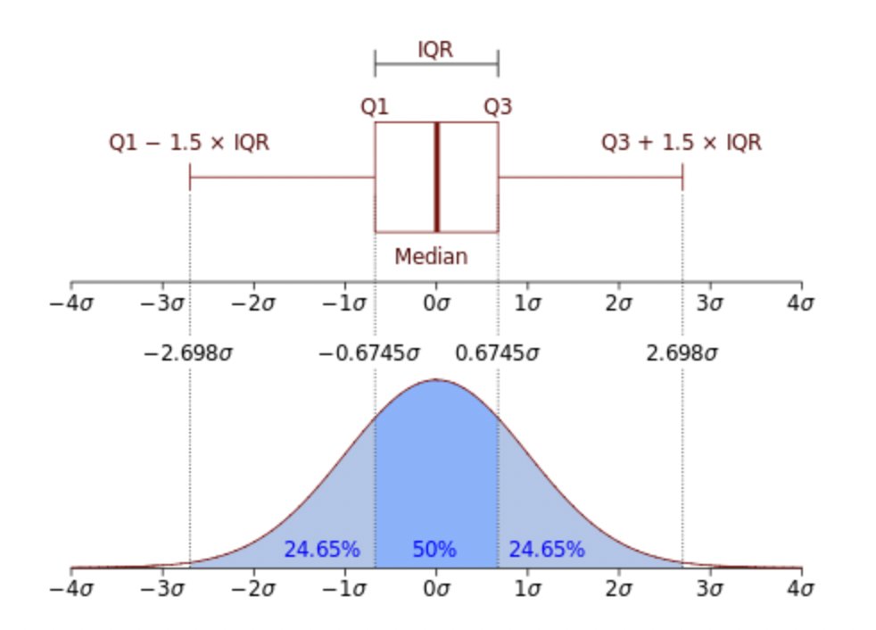 1⃣عند قياس التباين ، يفضل الإحصائيون استخدام النطاق الربيعي(IQR) بدلاً من نطاق البيانات الكامل(Range) لأن القيم المتطرفة والقيم المتطرفة تؤثر عليه بشكل أقل.