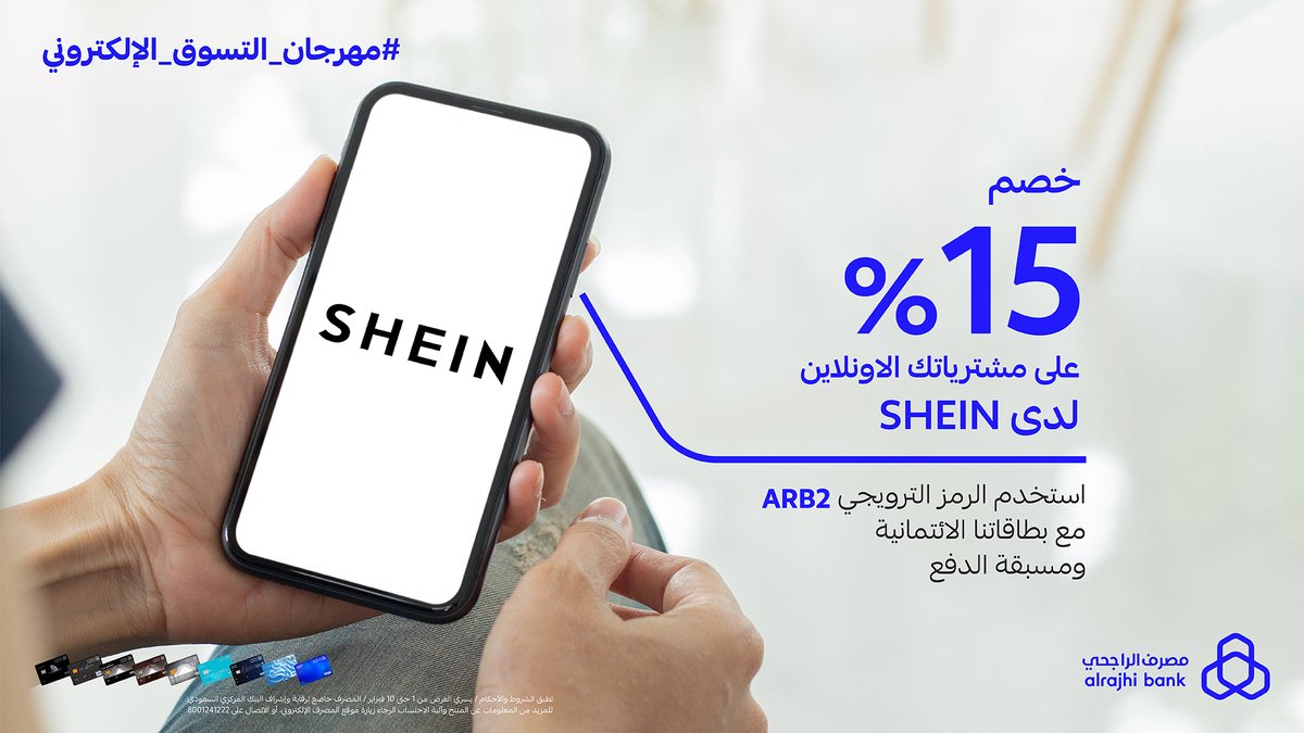 مع SHEIN بخصم 15% مع بطاقات #مصرف_الراجحي الائتمانية ومسبقة الدفع 💙