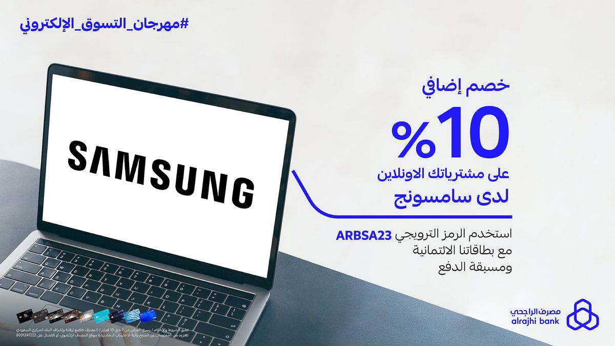 بخصم إضافي 15% على مشتريات الاونلاين باستخدام بطاقات #مصرف_الراجحي الائتمانية ومسبقة الدفع 💳