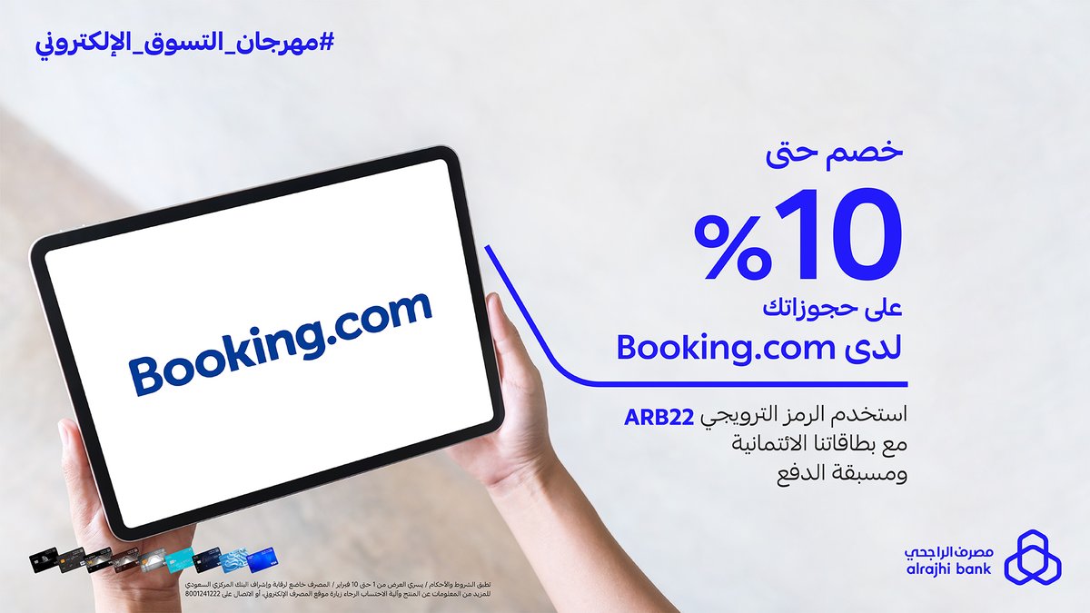 احجزها من booking بخصم حتى 10% مع بطاقات #مصرف_الراجحي الائتمانية ومسبقة الدفع 💳💙