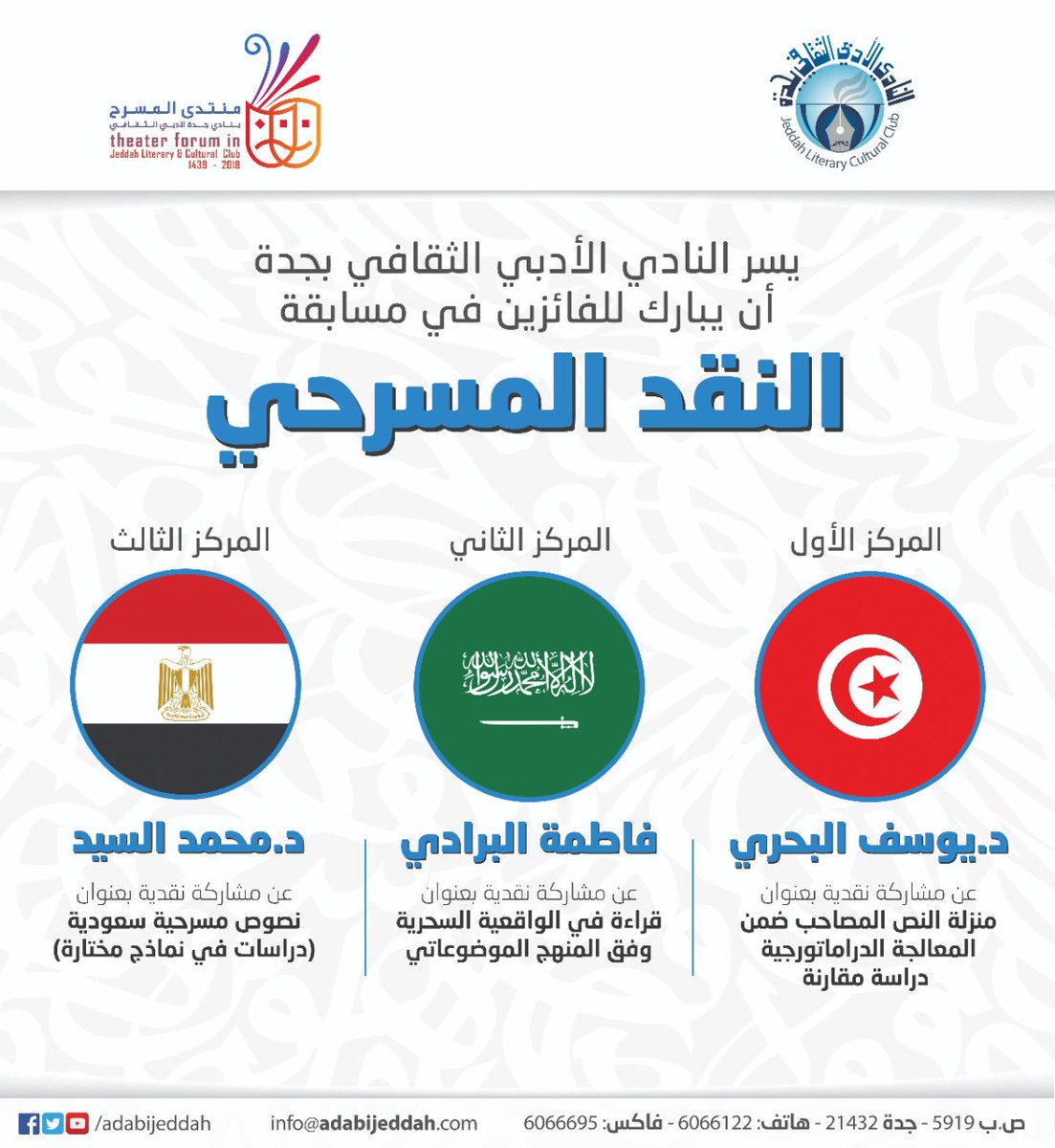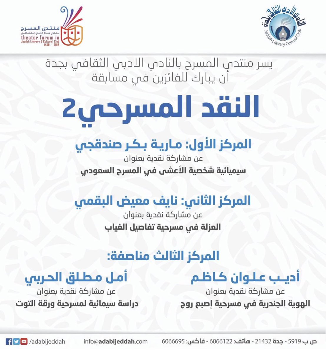 @ARABkau @Hsad_KAU @Dr_abdelmohsenQ @aanzs1417 @Prof_Almalki @ybabateen @kholoud08 @abdulazizammari @NKidwah @alsulami101 @PMaajeeni @adelkalzahrani @TaysirAlsharif @asmaa2017 @mariasandokji وقامت المؤسسات الثقافية والأندية الأدبية بطباعة أبحاث طالبات القسم وطلابه في مرحلة الماجستير والدكتوراة في إشارة لتميز الطرح النقدي لأبحاثهم