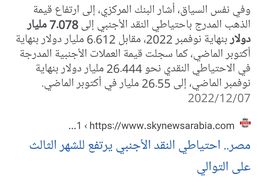 وان تحويلات المصريين الخارجية قلت شوية وبقت ٦.٤ مليار دولار وان السياحة حققت ٤ مليار دولار وان العجز التجاري نزل من ١١ مليار ل٩ مليار وان التصدير زاد والإستيرا قل وأرقم كتير قالها البنك المركزي علشان يطمن الشعب المصري على الإقتصاد المصري