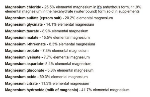 كميات المغنيسيوم الموجودة في المكملات هي ليست كميات عنصر المغنيسيوم الحقيقية