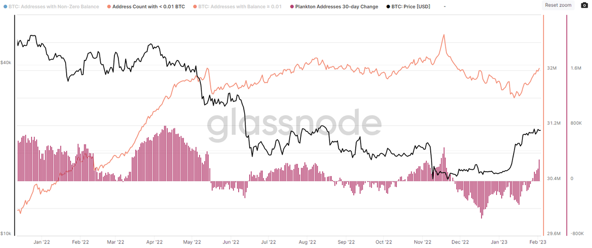 Podrzucam wykresy adresów według ilości #BTC. W obecnej konsolidacji widać lekkie wzrosty liczby najmniejszych portfeli. Największe raczej niewzruszone, a nawet delikatna redukcja podczas ostatniego rajdu.