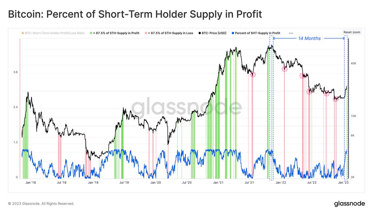 Krótkoterminowo jednak i na #BTC mamy symptomy przegrzania. Rośnie ryzyko korekty i przynajmniej lekkiego schłodzenia, jako że przytłaczająca większość krótkoterminowych hodlerów jest już w zyskach. Choć zdarzało się, że rynek rósł pomimo tego.