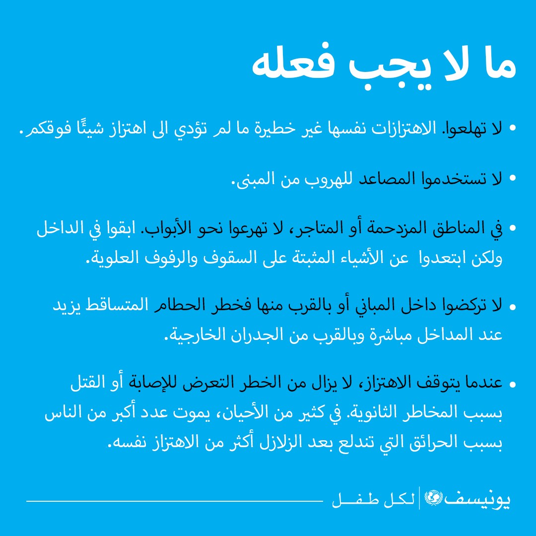 إليكم بعض النصائح حول كيفية الاستعداد والبقاء بآمان أثناء حدوث #زلزال. (سلسلة تغريدات)