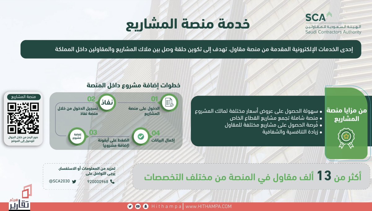 وهنا في هذا الانفوجرافيك أهم المعلومات عن "منصة المشاريع" اللي تربط بين اللي يدور له على مقاول صح سواء فرد أو شركة وبين شركات المقاولات👇🏼