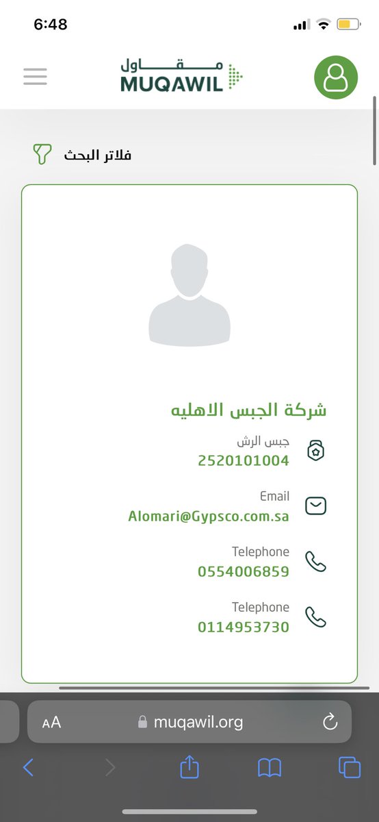 تقدر تبحث بنوع المواد أو نشاط المورد وفي أي مدينة ويعطيك ارقام التواصل معهم.