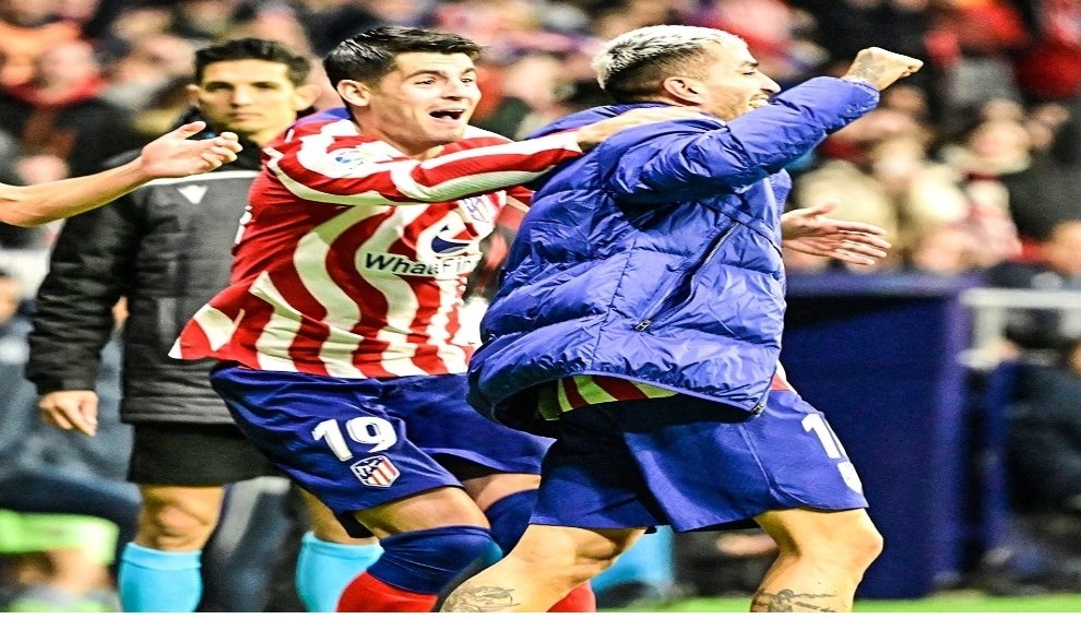 ارتدت الكرة من حارس مرمى نادي خيتافي فتصدى لها لاعب أتليتكو مدريد؛ الأرجنتيني أنخيل كوريا وسددها في المرمى. لكن الحكم ألغى الهدف بداعي التسلل. وضح الأسى والتحسر على وجه كوريا، وقبله على مدرب الفريق دييغو سيميوني، الذي يبدو أنه فكر في معاقبة اللاعب المتسلل فقرر إخراجه من الملعب،
