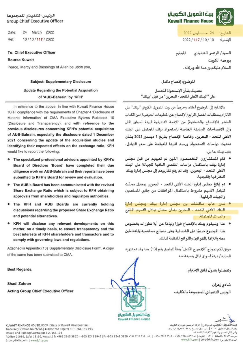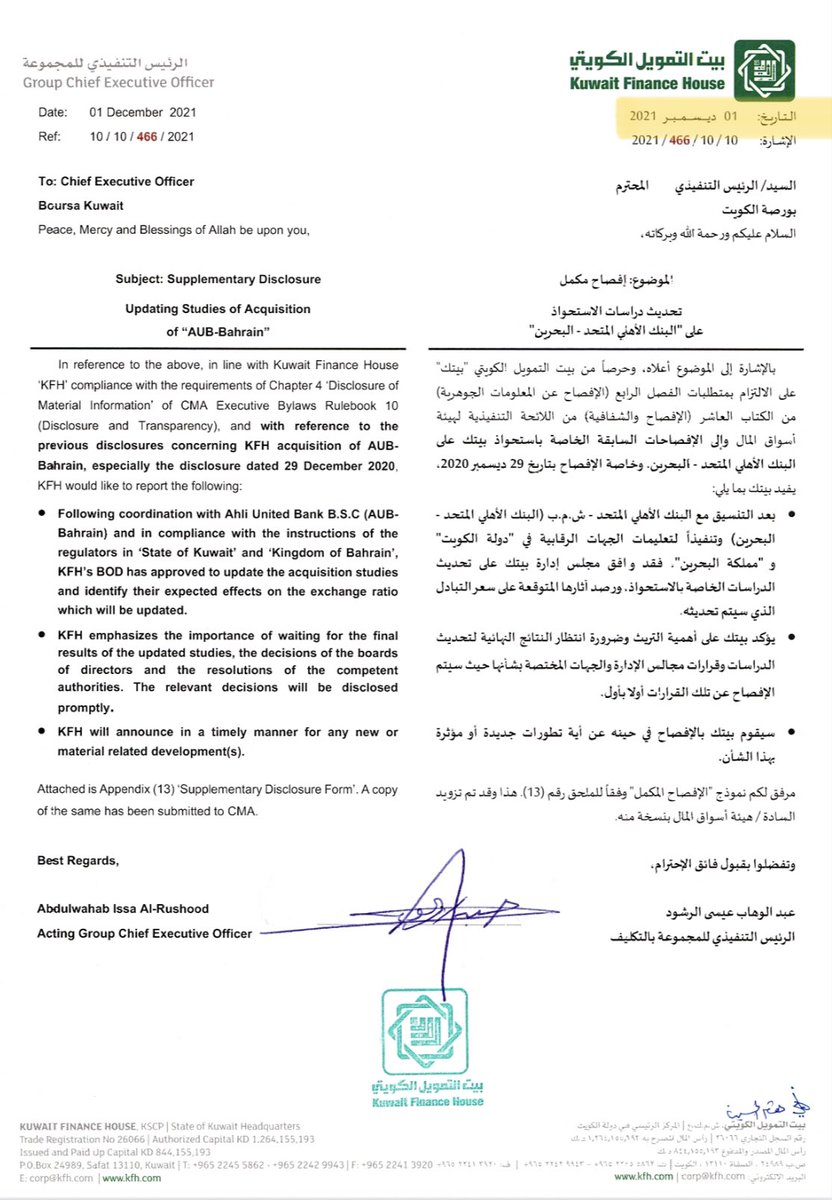 في ٢٥ يوليو ٢٠٢٢ أعلن بيتك رسميا التقدم بطلب الاستحواذ على الأهلي المتحد .. هل تحقق الرشيد من أي ضرر على المال العام؟ لا .. بل أن مؤسساته كانت تشيد بالصفقة .. وعلى رأسها البنك المركزي الجهة الرقابية التي أما تعطي الضوء الأخضر أم توقف الصفقة ..