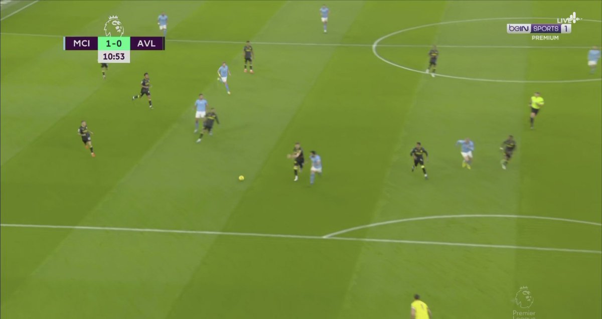 ثلاثي الدفاع يحمل مسؤولية اكبر بعملية اللعب في انصاف المساحات، لدي بروين، اللعب بين الخطوط لغاندوغان الي يلعب دور مهم باللامركزية بمناطق الهجوم