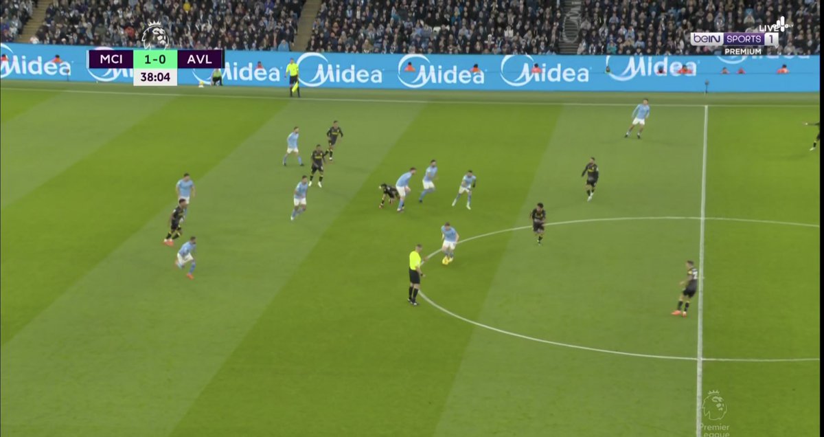 السيتي يلعب بدون اظهرة بالتشكيلة، يلعب فقط بالاجنحة محرز وغريليتش، وهنا بيب يستبدل الاظهرة الوهمية بلاعبين الوسط