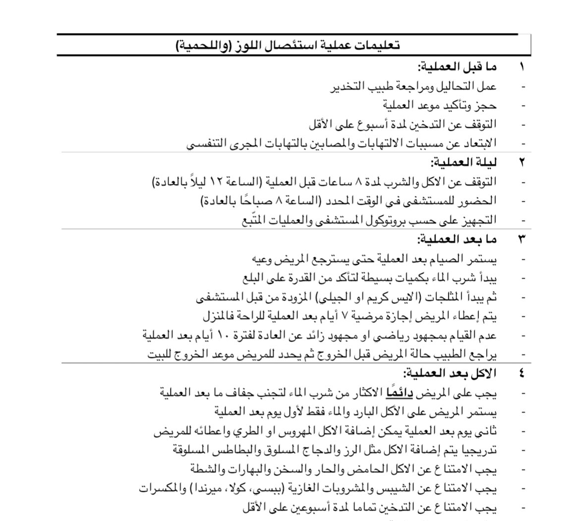 يجب على المريض اتباع تعليمات ما بعد العملية في اول ٧-١٠ أيام
